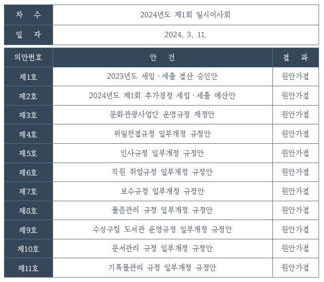 2024년 제1회 임시이사회 안건과 회의결과