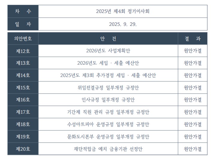 2025년 제4회 정기이사회 안건과 회의결과