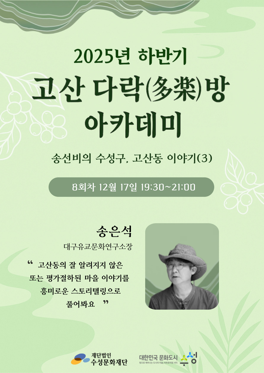 고산 다락(多樂)방 아카데미 8회차 '송선비의 수성구, 고산동 이야기 (3)' 19:30~21:00